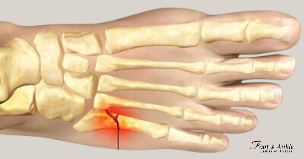 Stress fractures are tiny breaks in the bones. They are caused by the repetitive stress of actions, which is otherwise known as overuse. The most common area where such an injury takes place is along the 5th metatarsal, on the outside of the foot. These types of fractures usually build up over time and for the most part, the pain gets progressively worse, especially during walking or weight-bearing activities.