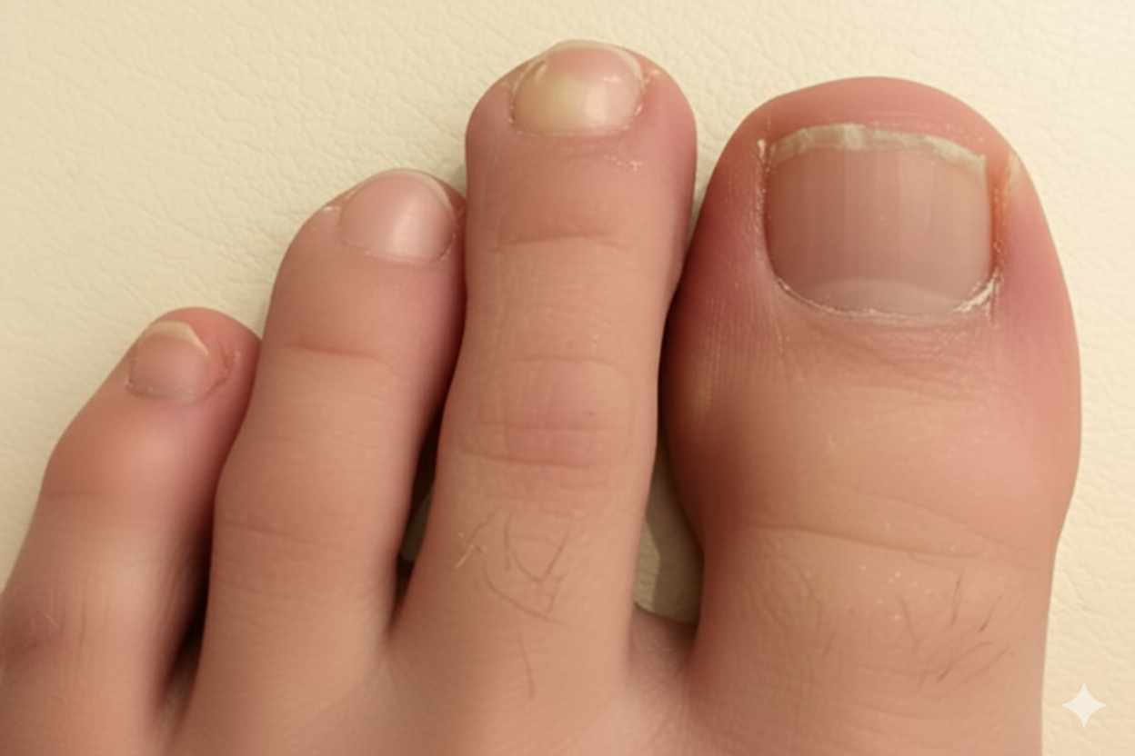 - Pain or discomfort in the affected toe
