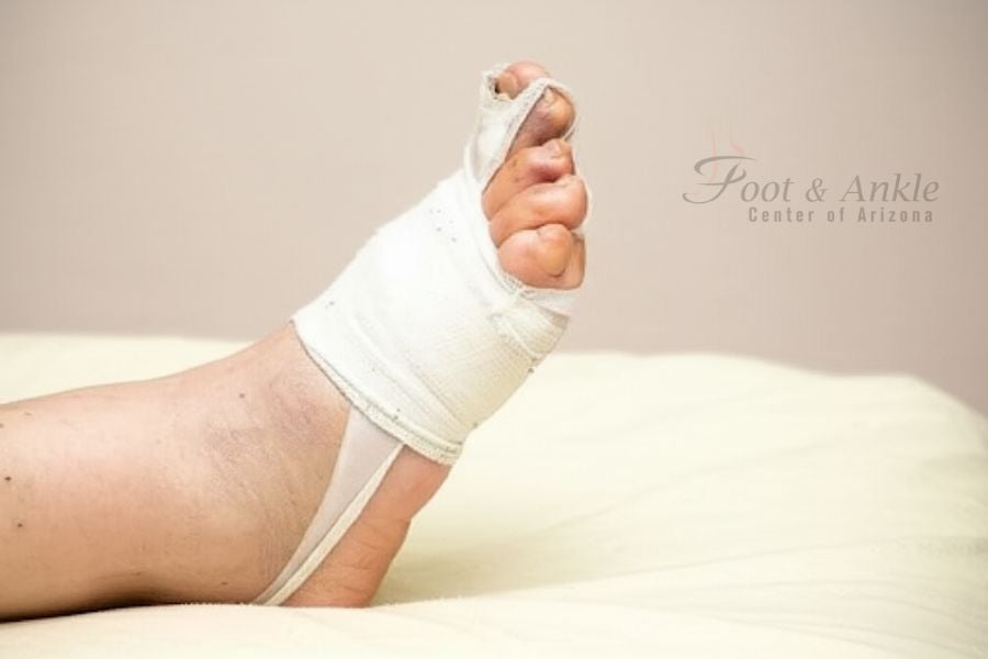 To stave off complications, follow the foot and ankle surgeon’s wound care directions.